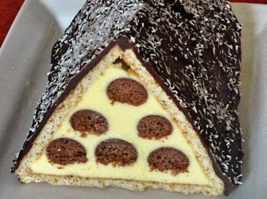 - Pour over the triangular cake, letting it drip down the sides.