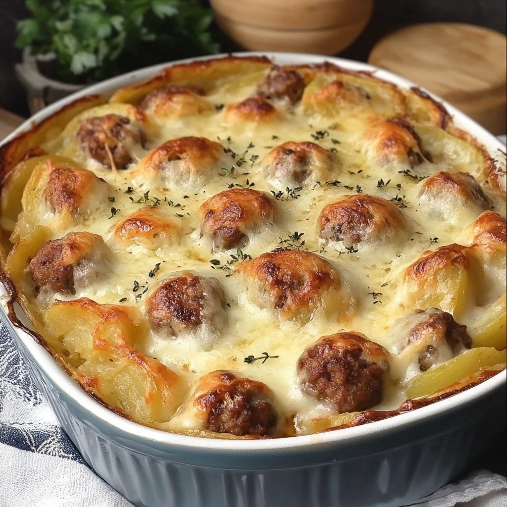 A simple yet satisfying French treat—Baked Potatoes with Meatballs and Cheese! 🥔🍽️