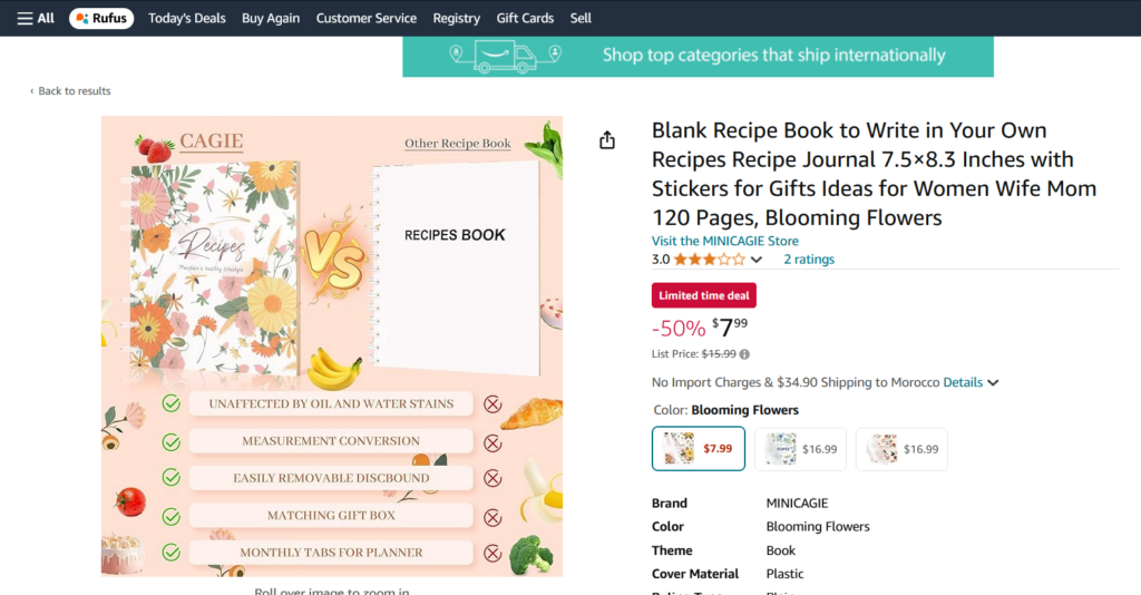 Blank Recipe Book to Write in Your Own Recipes Recipe Journal 7.5×8.3 Inches with Stickers for Gifts Ideas for Women Wife Mom 120 Pages, Blooming Flowers