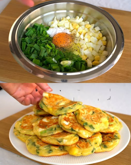 Fold in the chopped boiled eggs, green onion leaves, and any additional herbs or spices you’re using. - Heat your skillet: