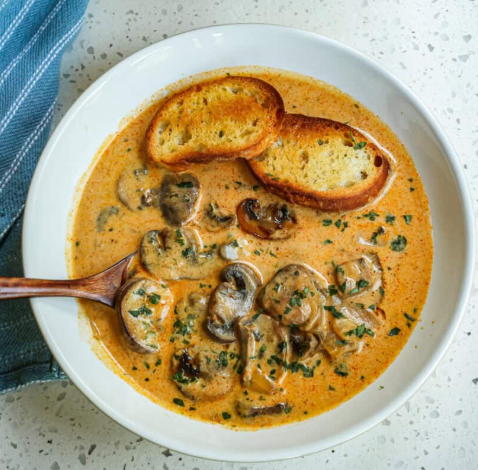 - In a bowl, mix sour cream with a bit of hot soup to temper.