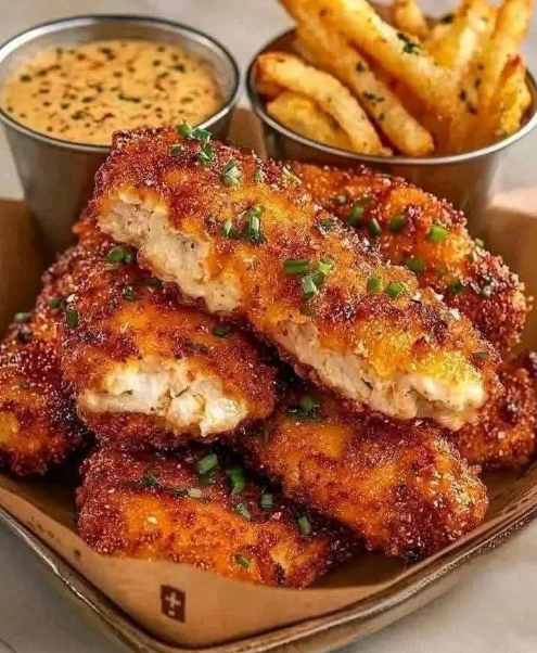 “Crispy Chicken Tenders with 3-ingredient dipping sauces — golden, juicy, and 100% addictive! 🍗✨ These flew off the plate faster than I could make them! #CrispyGoodness #AshleyCooks #FamilyFave”