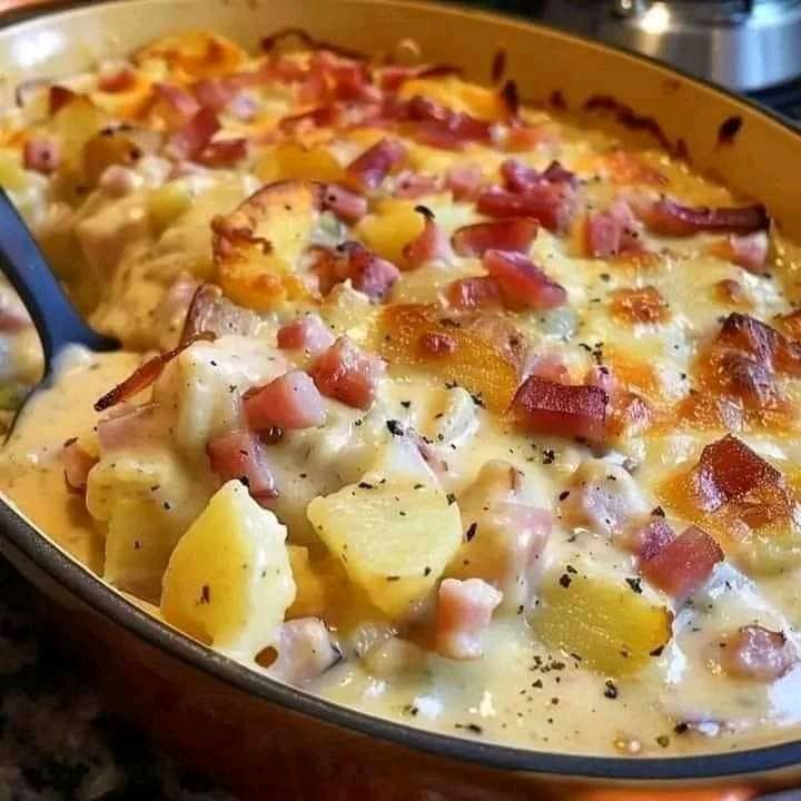 - 2 cups cooked ham, diced: Leftover ham works perfectly, or you can buy pre-cooked ham for convenience. Ham adds a savory, salty depth of flavor that balances the creaminess of the potatoes and cheese.