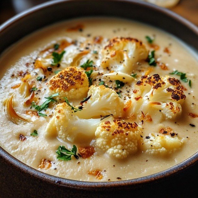 Cheddar Cauliflower and Roasted Garlic Soup 🧀🥦