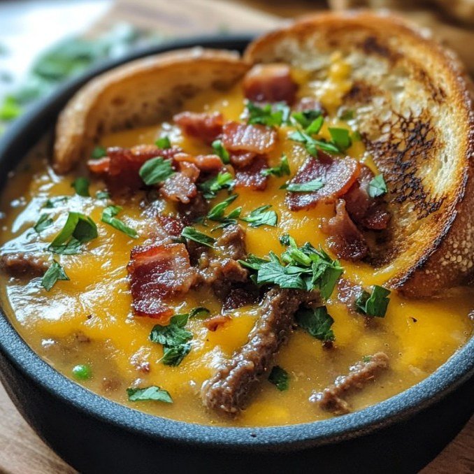 One-Pot Philly Cheesesteak Soup with Bacon and Cheesy Toast 🥣🥓🧀