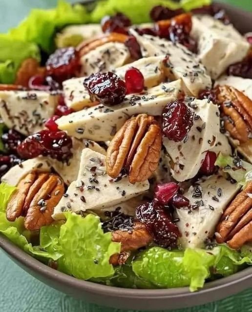 - Mezcla los Ingredientes: En un bol grande, combina el pollo, arándanos, nueces, apio y cebolla roja.