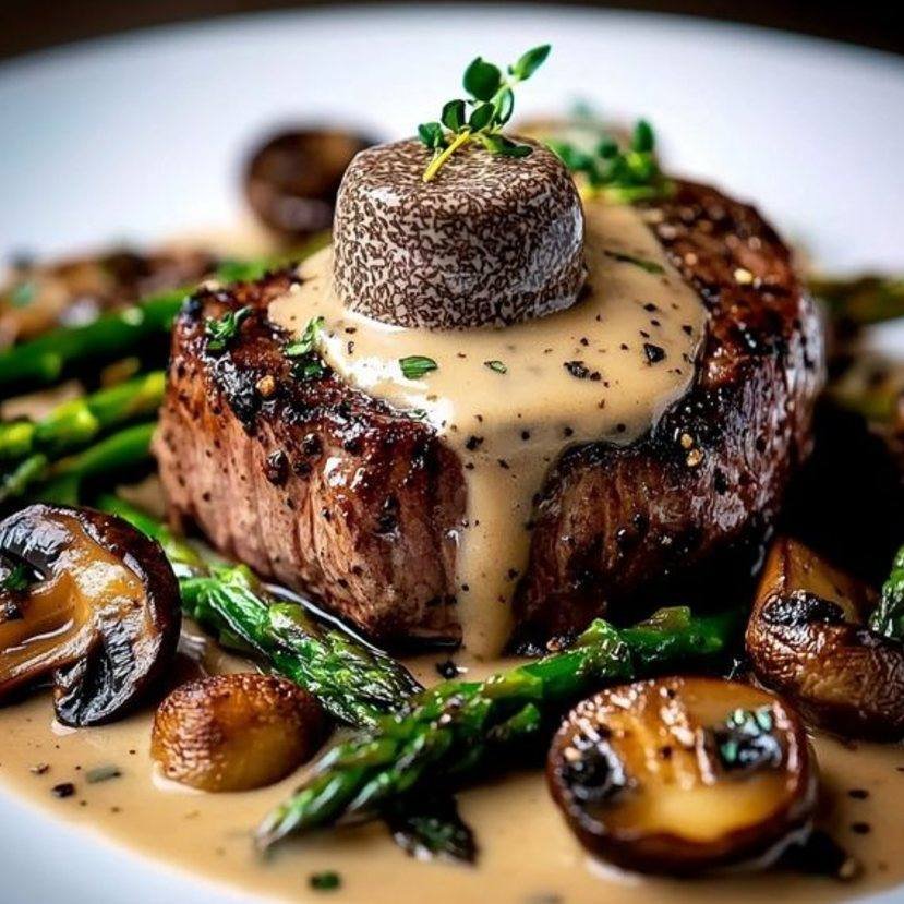 Filet Mignon with Mushroom Sauce and Asparagus 🥩🍄