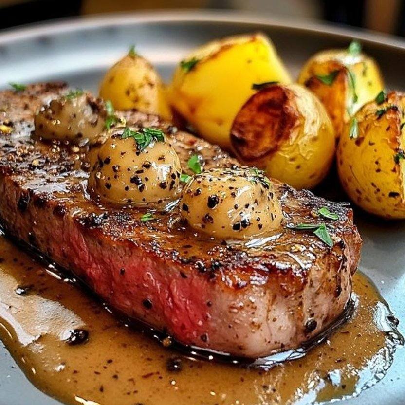 Steak with Peppercorn Sauce and Roasted Potatoes 🥩🍽️
