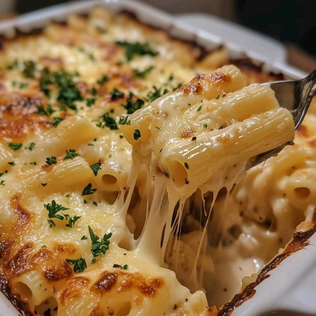 This four-cheese baked macaroni is perfect for family gatherings or cozy nights in. The combination of cheeses gives it a deep, savory flavor with a delightful, crispy topping.