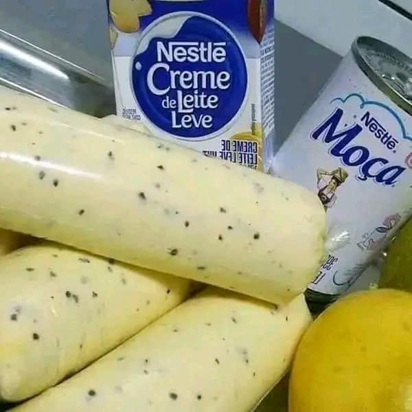 Pon las fresas picados en las bolsitas de helado. Luego llene con la mezcla que fue batida (no llene mucho). Ate la punta de la bolsita con un nudo y ligero para congelarse de un día a otro. Ver menos