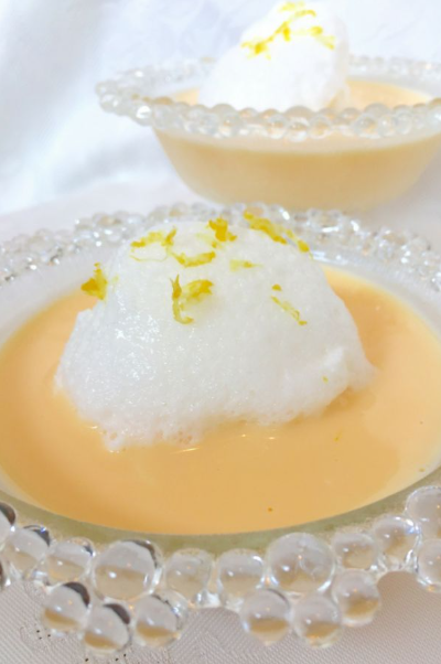 - Gently place the floating meringue islands on top.