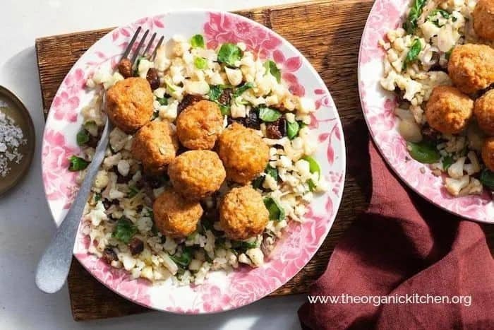 - Spoon meatballs and sauce over cauliflower rice.