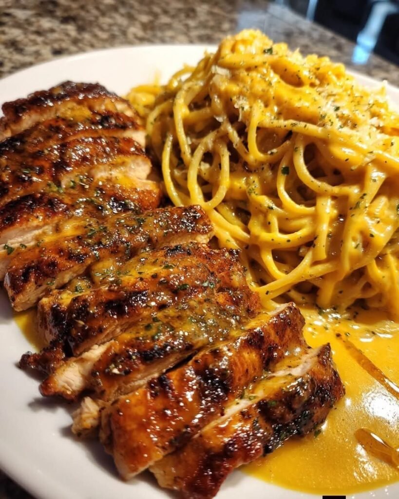 Creamy Garlic Butter Chicken & Linguine in Alfredo Sauce