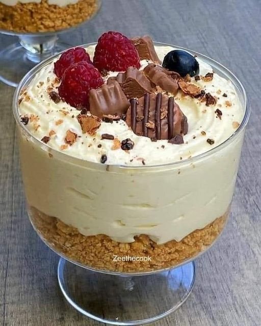 Tarta de queso sin hornear en un vaso.
