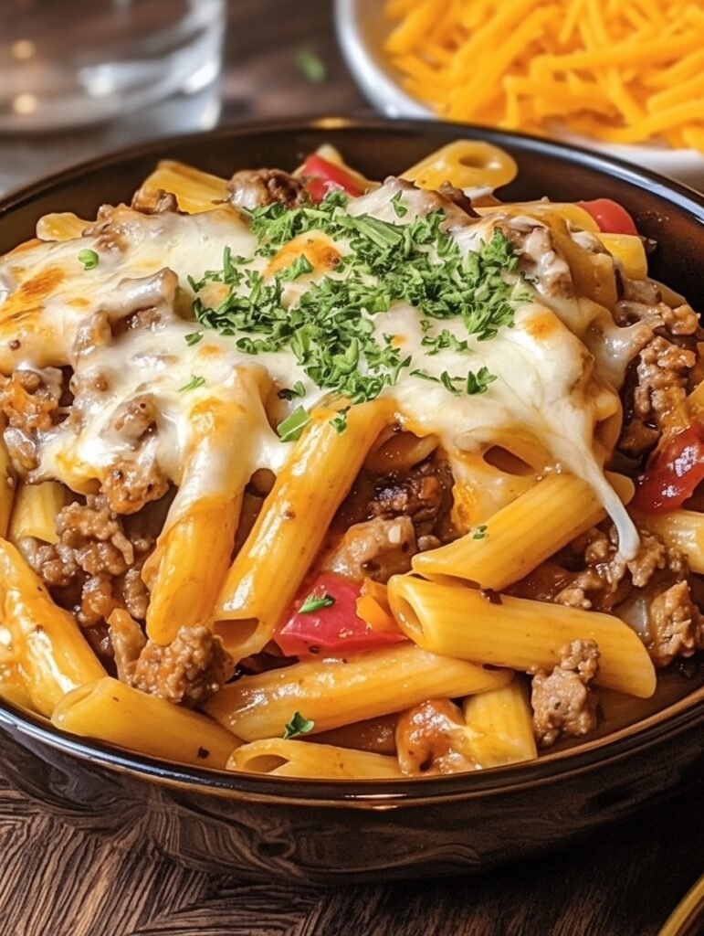This Philly Cheesesteak Pasta is a perfect fusion of flavors, blending the hearty, cheesy goodness of pasta with the savory notes of the classic cheesesteak!