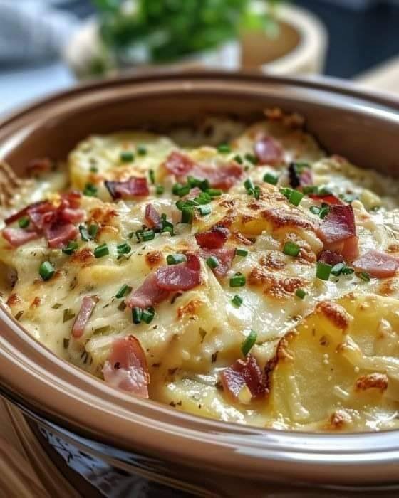 Here’s a Slow Cooker Scalloped Potatoes and Ham recipe, perfect for eight servings: