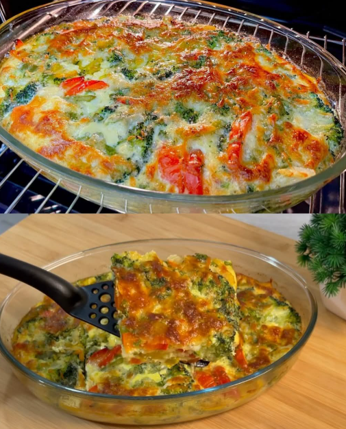 - Pour the egg mixture evenly over the vegetables.