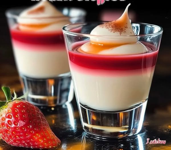 Enjoy the sweet, creamy delight of these strawberry cream shots with family and friends!