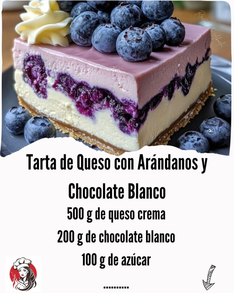 ¡Disfruta de esta deliciosa tarta de queso con arándanos y chocolate blanco, un postre perfecto para cualquier ocasión!